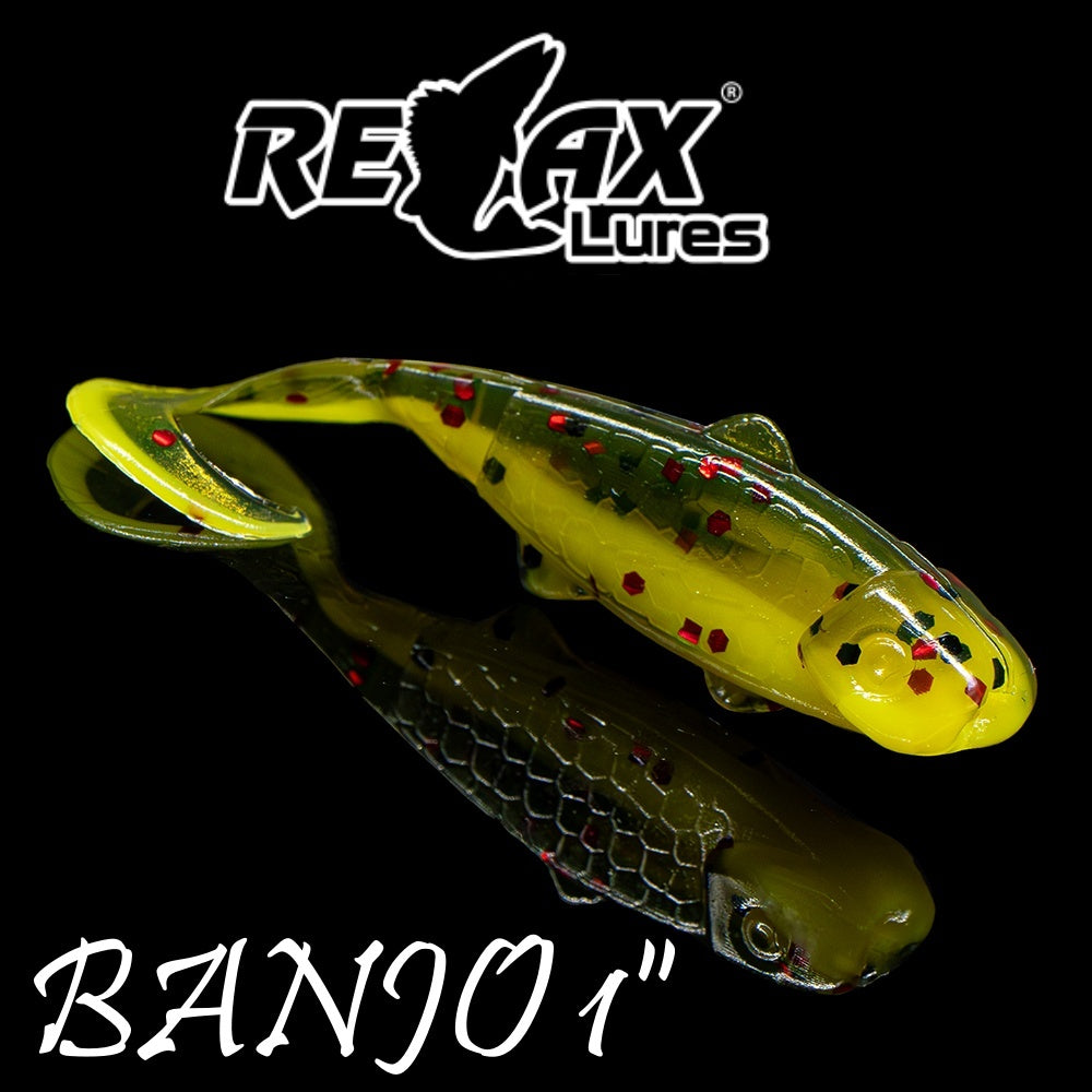 Banjo 1” has a lifelike Relax Style grub tail that is designed to increase water resistance so that it flutters and waves violently even with the slightest movement.